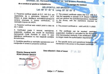 IAR S.A. is certified as maintenance organization in compliance with Section A of Annex II (Part 145) of Regulation (EC) No. 1321/2014 by Romanian Civil Airworthiness Authority.
